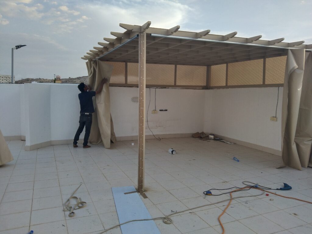 3. مظلات وسواتر الرياض مظلات وسواتر الرياض ومظلات سيارات الرياض: مقاومة للغبار والحرارة الشديدة.سواتر الرياض: أنواع حديد وقماش للخصوصية في الأحياء السكنية.