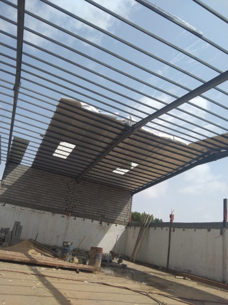 اطلب مواصفات واضحة (وزن الحديد، ميل السقف لتصريف المطر، عزل حراري إذا لزم).